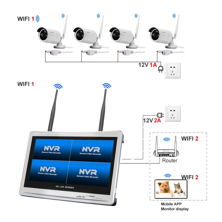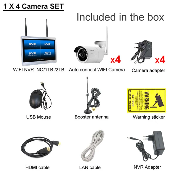 Комплект камер відеоспостереження 4 камери з монітором вуличні WI FI H.265