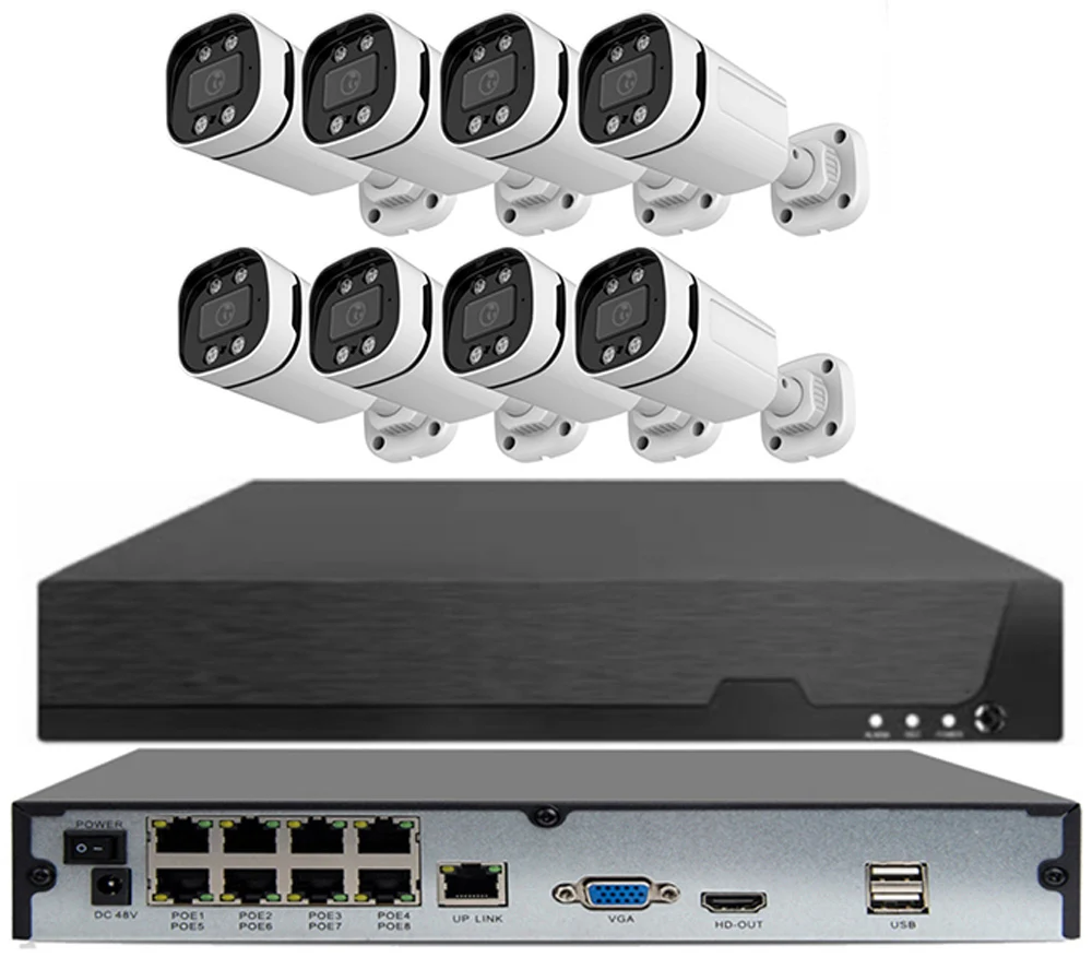 - Камери: 8 шт. типу Bullet (куля) з роздільною здатністю 4 Мп.